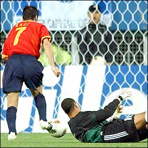 As a pure aesthete, Arendse’s performance was less sporting more an art installation. Against Paraguay he charged out to a cross missing his punch, conceding the first goal. Against Spain, unchallenged, he let a harmless through ball squirt out of his hands to the feet of Raul who gratefully slotted home. By demonstrating the futility of these guttural goalkeeping qualities, he was able to emphasise the beauty of his shot stopping.