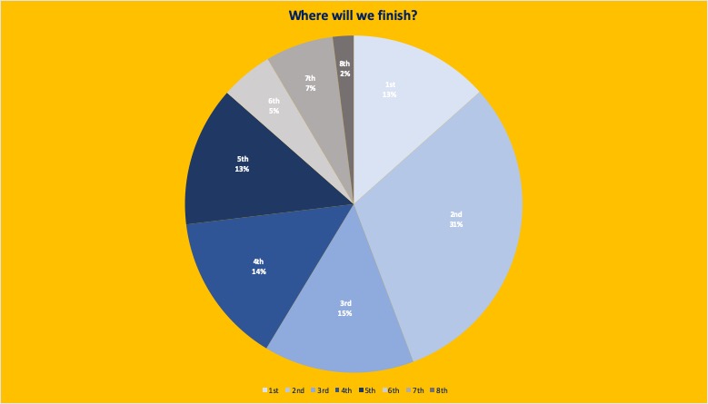 A wave of optimism has seen expectations rise; 30.5% expect us to finish second at the end of the season with 13.5% expecting us to win the title. Just 8.5% of the vote don’t expect us to make the play-offs so the bar is pretty high.