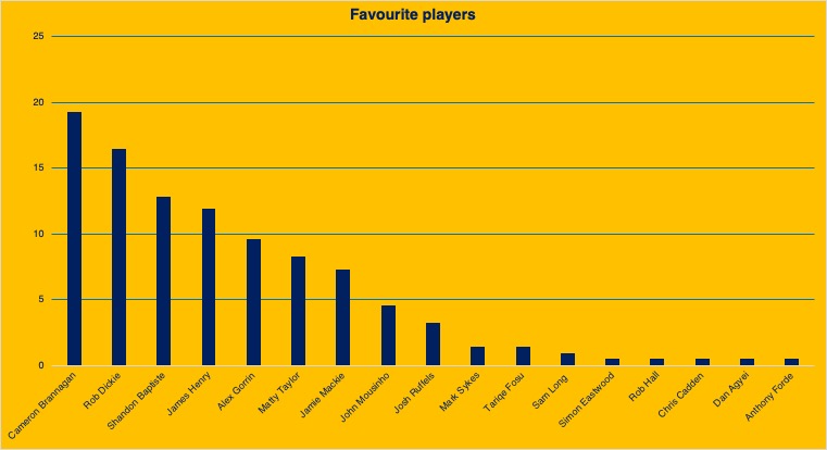 When it came to players, we’re not comparing like for like; the squad in the summer wasn’t complete and only 12 players picked up votes. Gavin Whyte led the way back then with 31.7% of the vote followed by Cameron Brannagan with 18.4%.