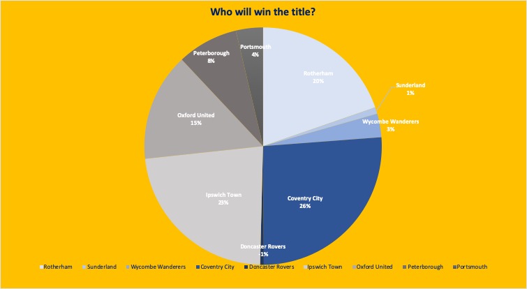 At the bottom 74.2% expect Southend to finish bottom with Bolton picking up 24.4%. MK Dons were the only other team voted for, which may just be out of spite.