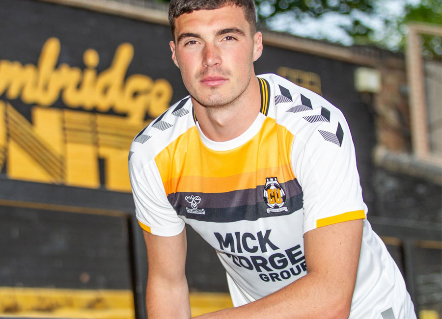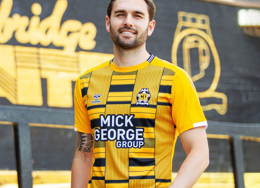 Good. god. A proper tale of three shirts at Cambridge United – the third, white, shirt is a cracker with the Hummel chevrons, the second kit is a reasonable effort with the diagonal pinstripe on the away shirt, but what the heck happened with the nine-designs-in-one effort on the home shirt?