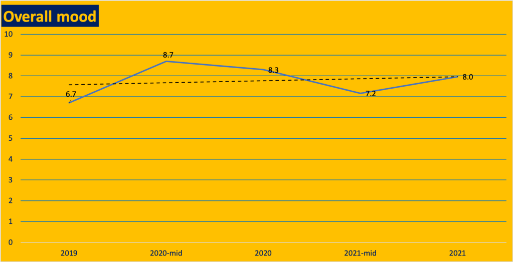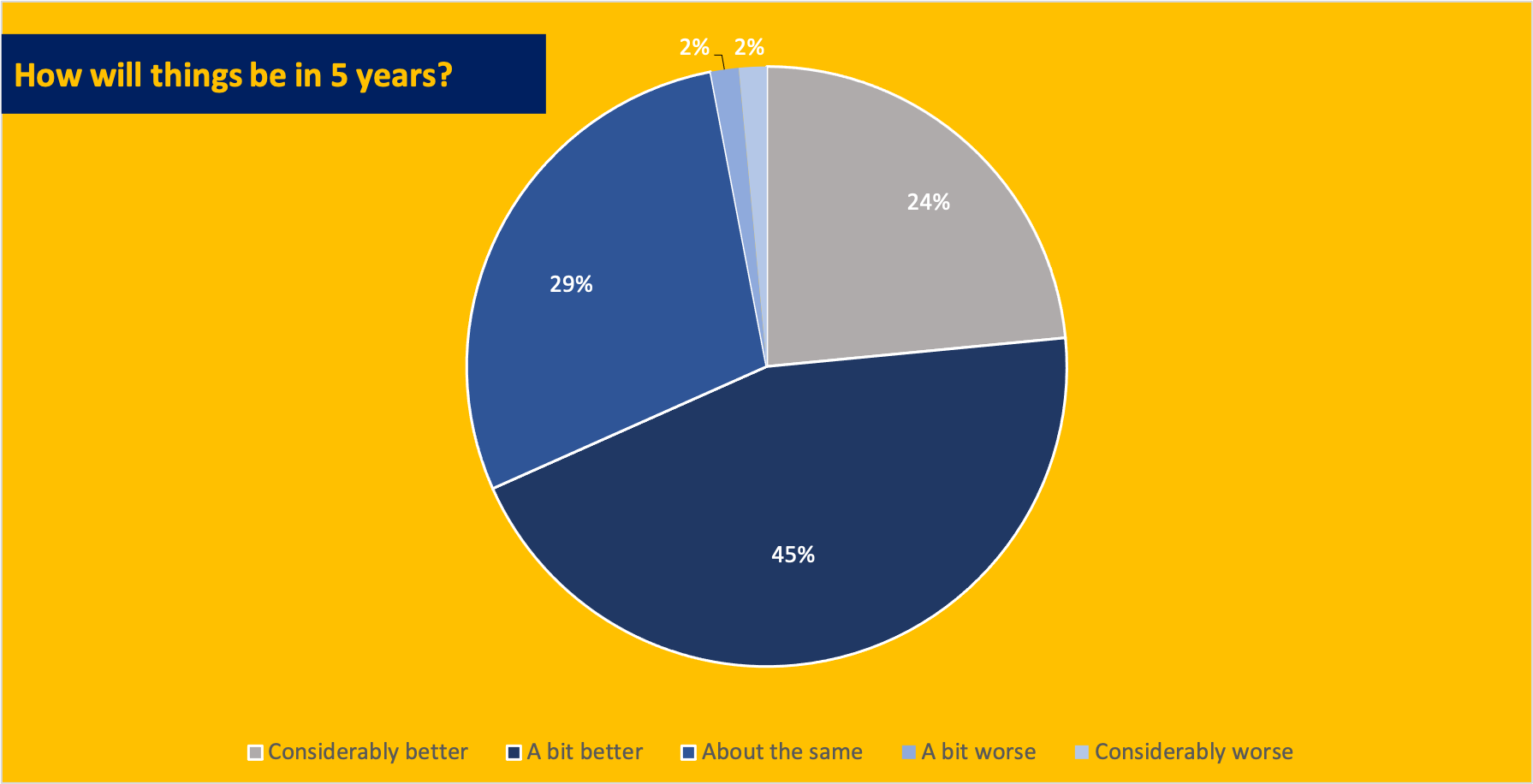 Casting forward, there is more caution, 45% expect it to be a little bit better with 29% expecting it to be about the same. It might be the looming threat of the post-pandemic world, but optimism is slightly worse than it was a year ago.
