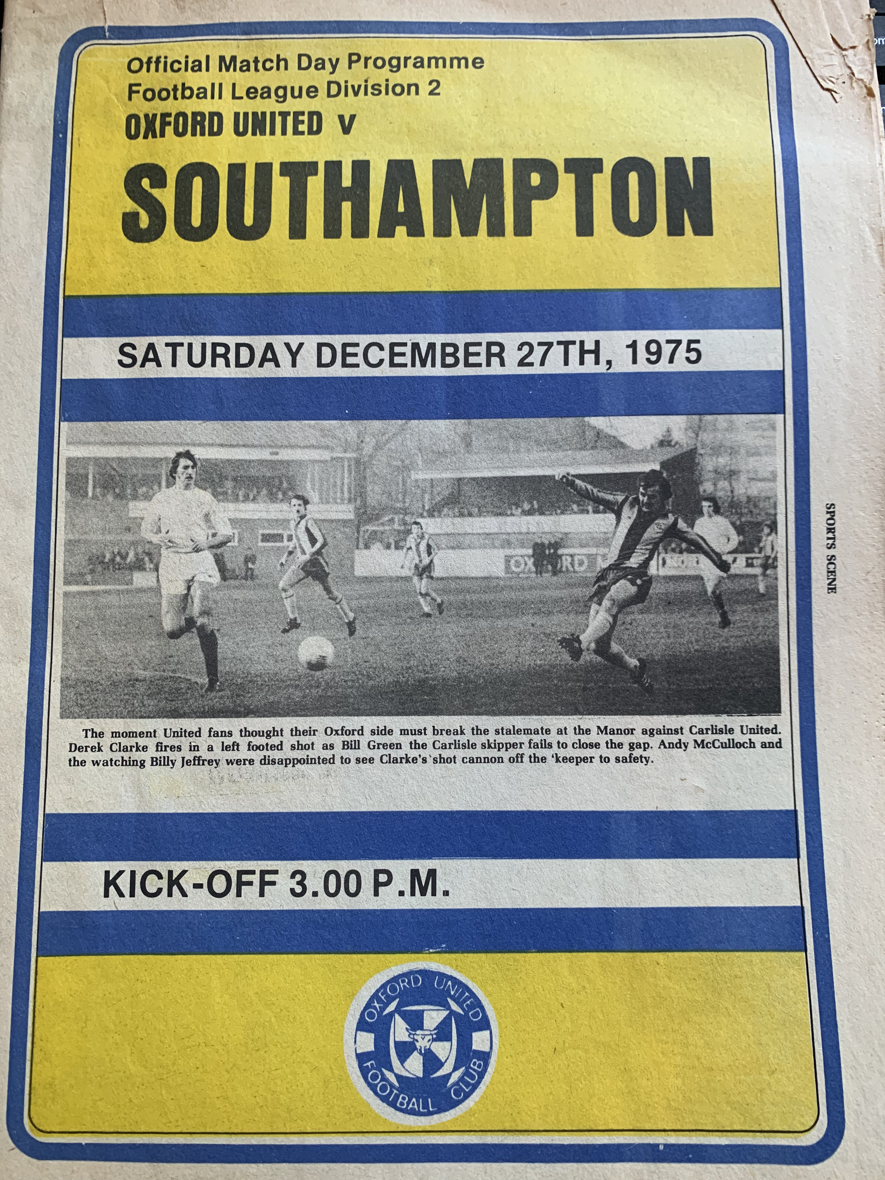 The real buzz before and after the game was an FA Cup third round tie away to Manchester United, which was to be played the following Saturday. The match report talks about Derek Clarke scoring a spectacular opener before Manchester United pegged Oxford back with two disputed penalties. The decisions so incensed the Oxford hierarchy that the club lodged a formal complaint about referee George Courtney. Mick Brown melodramatically said “All I have is a broken heart after Manchester”.