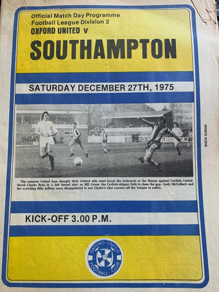 Oxford’s response came in the second half attacking up the hill towards the Cuckoo Lane End. Tait’s goal, which according to the non-bias assessment of the programme’s editor, was the ‘pick of the bunch’. Tait broke through, leaving Southampton defenders David Peach and Peter Rodriguez trailing to lift the ball over the goalkeeper to make it 2-1.