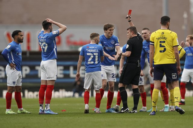 Ultimately it was nothing, there was a half-hearted protest, which was mostly performative. Mark Sykes gestured that Morrell had kicked Brannagan. It was like the scene in Do The Right Thing when Bugging Out’s Air Jordan’s get scuffed and his friends try to convince him it’s a racially aggravated assault. The ref didn’t seem to fall for it and wondered around calmly, then promptly sent Morrell off. Minutes later George Hirst clattered Elliott Moore in almost the same spot. Now that’s a red card. The referee seemed similarly non-plussed, but was he ready to reduce Portsmouth to nine men inside twenty minutes? No.