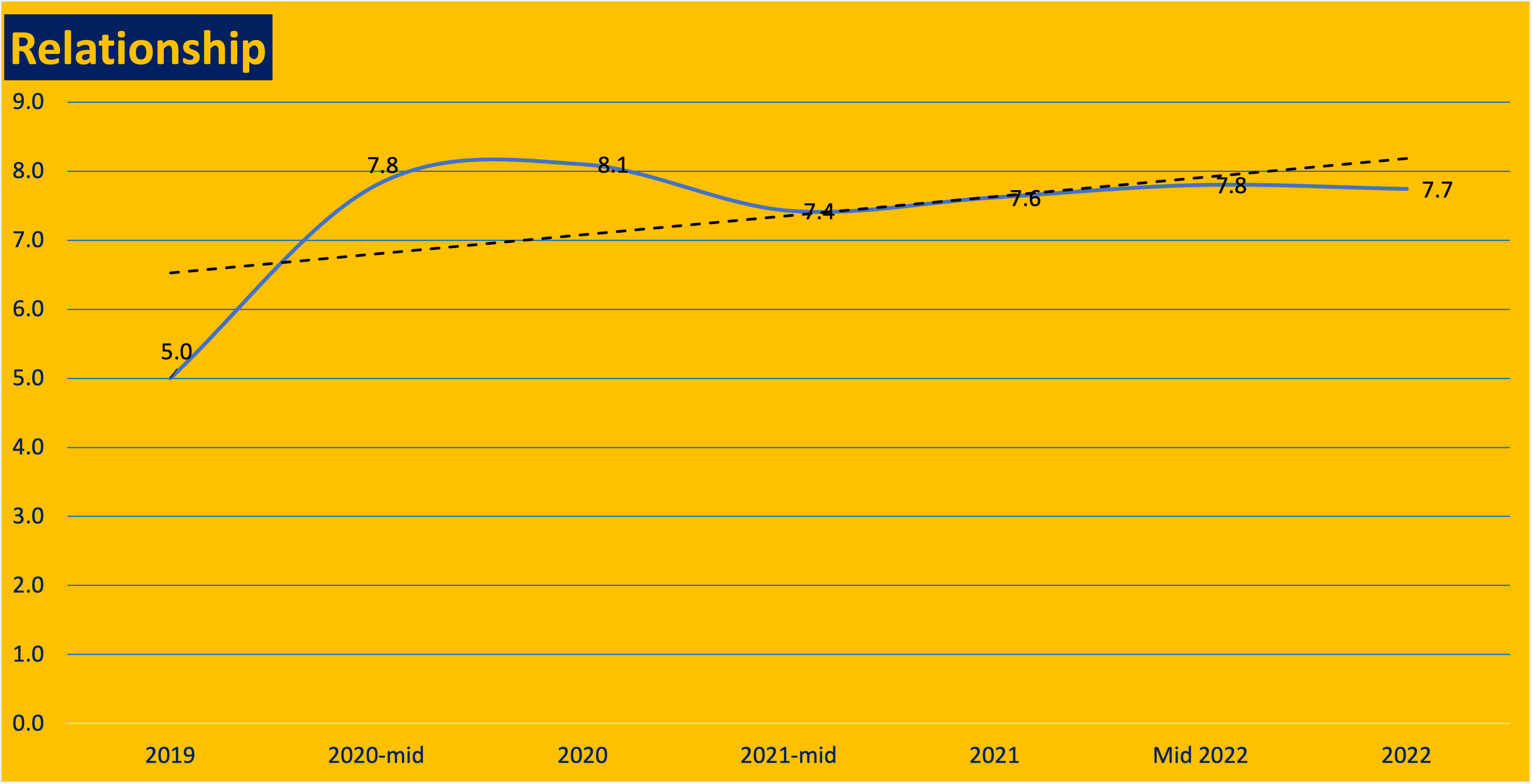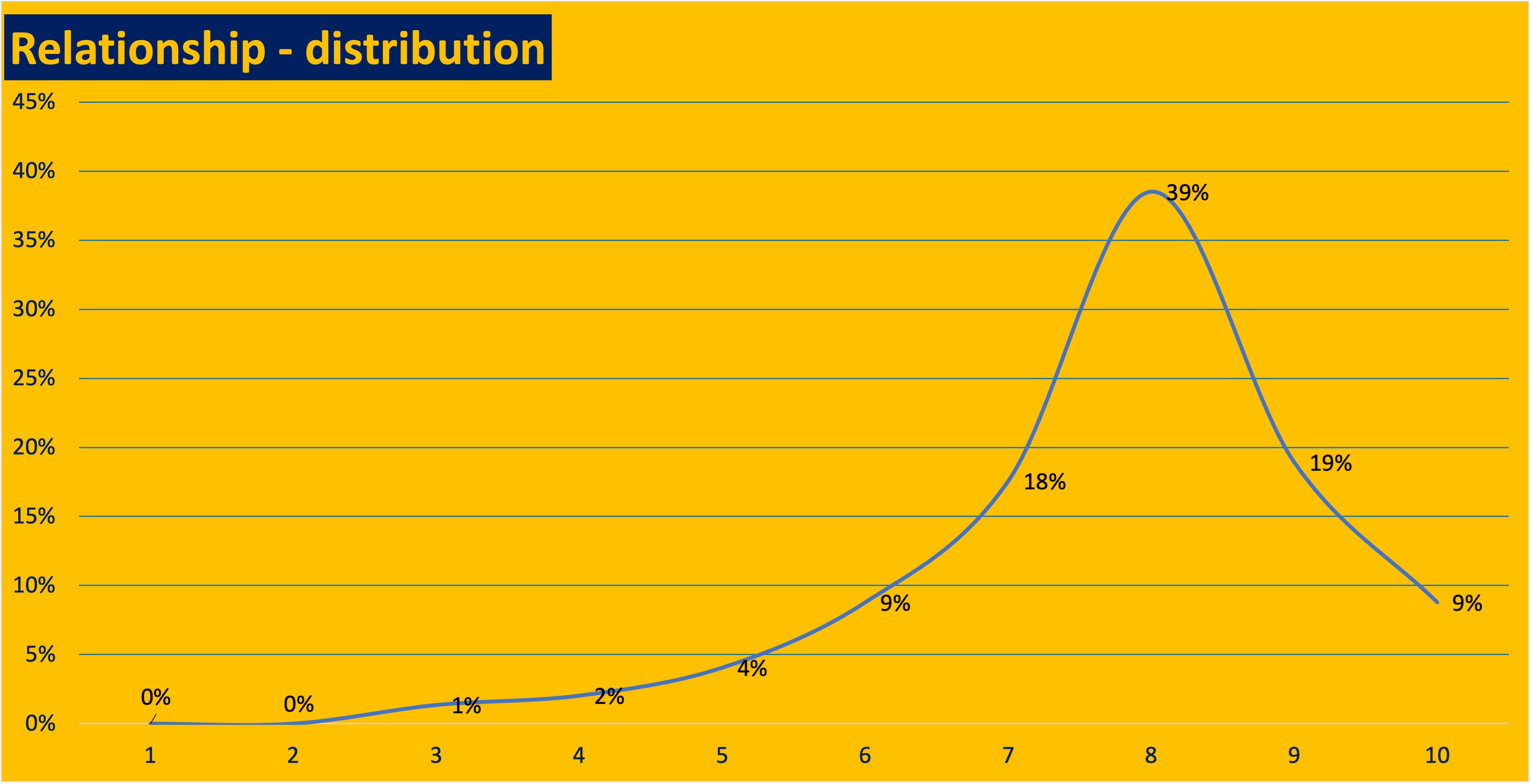 There are few additional clues from the distribution curve, there’s a reasonable consensus – a solid 39% rated the relationship with the club 8 out of ten, but a not inconsiderable 16% rated the relationship six or lower. It’s worth noting, this is all an improvement on last year (after a year of lockdown, of course) when 32.8% of people rated the peak of 8 out of ten and 24% rated the relationship six or less.