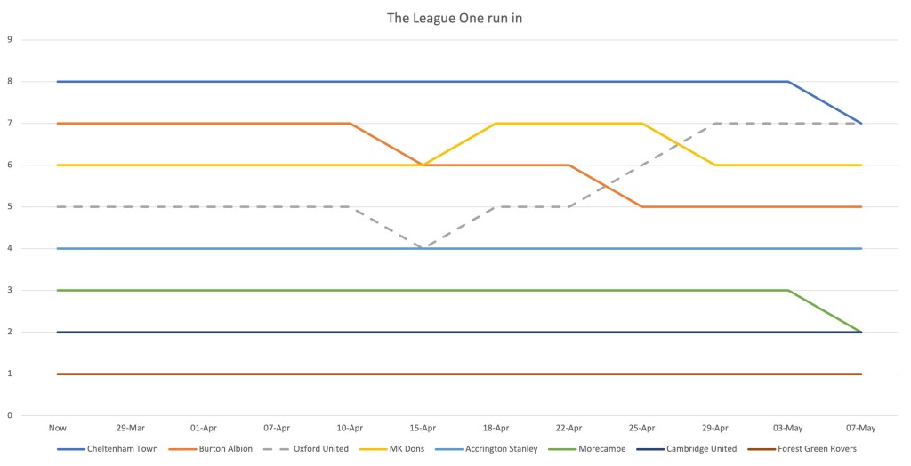 So, to address this helplessness, many of us start doing calculations; making predictions of outcomes, creating endless what-if scenarios. But it’s all very imprecise, there’s a question of bias, you know infinitely more about your team than any others, Forest Green probably look universally hopeless on paper, whereas we believe (I think) that Oxford just need a few players turning their form around to us safe. If you support Forest Green, it might be the other way around.
