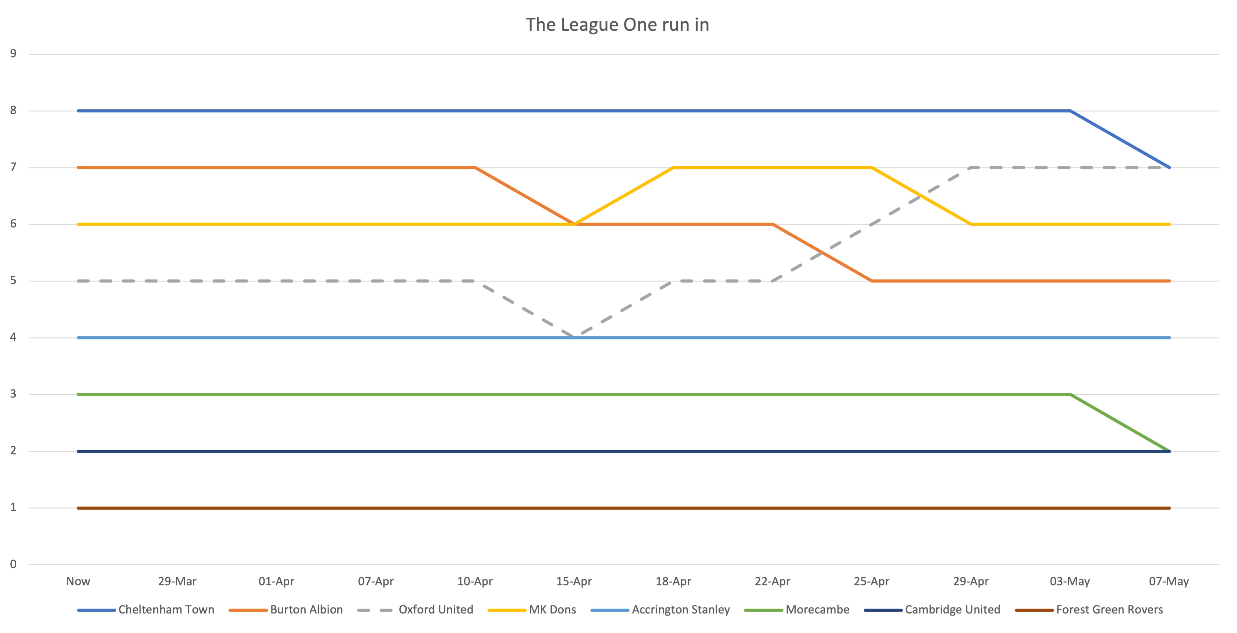 So, to address this helplessness, many of us start doing calculations; making predictions of outcomes, creating endless what-if scenarios. But it’s all very imprecise, there’s a question of bias, you know infinitely more about your team than any others, Forest Green probably look universally hopeless on paper, whereas we believe (I think) that Oxford just need a few players turning their form around to us safe. If you support Forest Green, it might be the other way around.