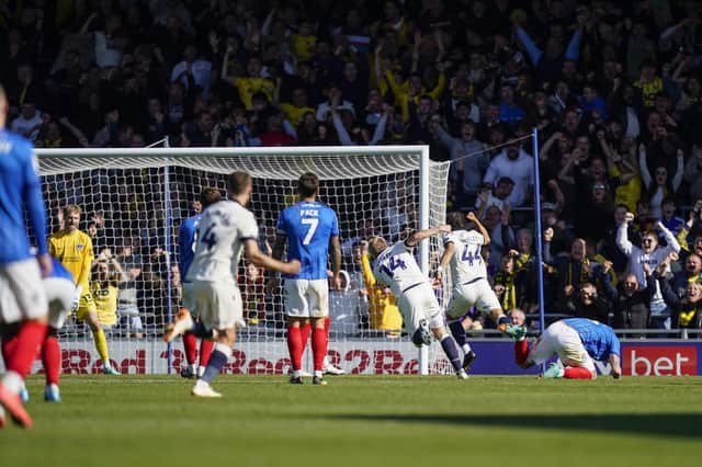 Within three minutes he’d made his mark, storming through the middle, his early shot left the keeper rooted to the floor. It was another Des Buckingham masterful substitution, particularly as he’d also just brought on Dane Scarlett, who’d help win the ball in the first place and then powered down the channel dragging the Portsmouth defence away to give Sibley space to attack.