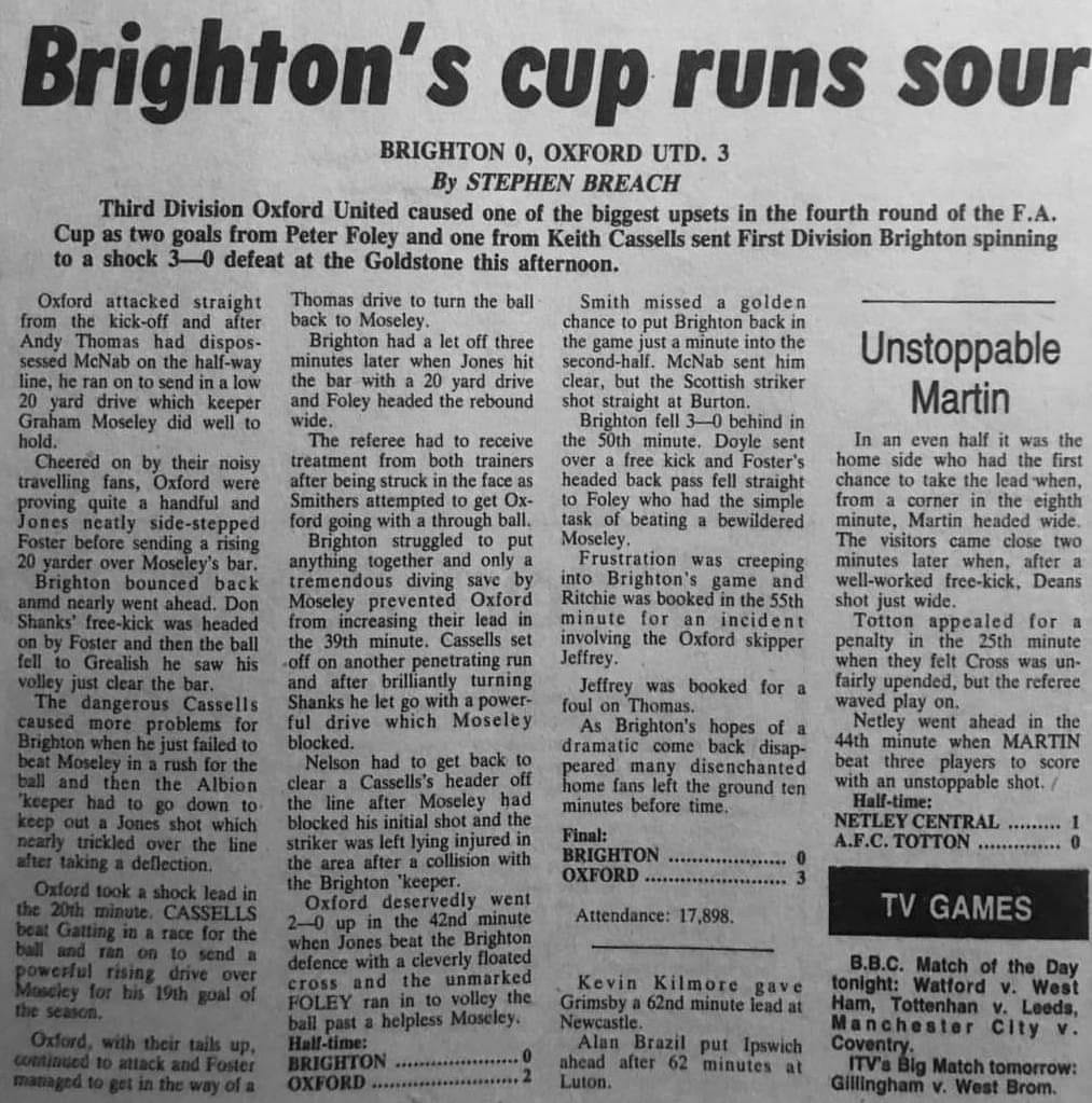 From the archive: Brighton 0 Oxford United 3 (1982)